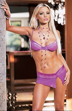 Lace and Denier 2 Piece Teddiette shows like a Bustier, but is really a teddy (which some women prefer!) It has underwire cups, adjustable straps, 15 denier thong back and comes with Stockings!