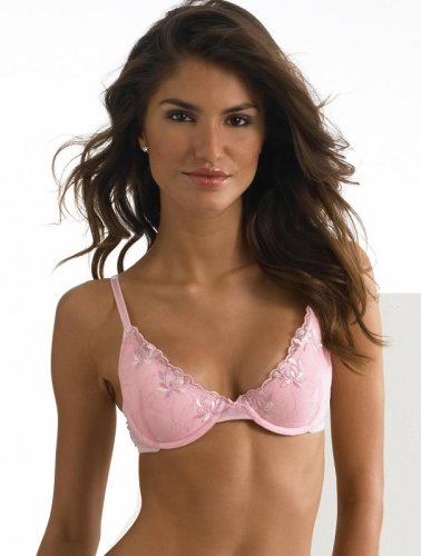 Floral embroidered lingerie. Sensual shapes with exquisite detail. Push up underwire bra with a comfortable cotton lining. Adjustable straps and back closure with foam padding at cups.
